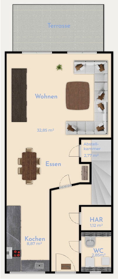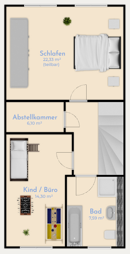 Jedes Familienmitglied findet hier seinen ganz persönlichen Rückzugsort: Ob gemütliche Kinderzimmer, ein inspirierender Homeoffice-Bereich für ungestörtes Arbeiten oder ein liebevoll eingerichtetes Gästezimmer – die flexibel nutzbaren Räume wachsen einfach mit Ihren Bedürfnissen mit! Und sollte Ihre Familie noch größer werden, gibt es sogar charmante Möglichkeiten, zusätzliche Oasen zu schaffen.