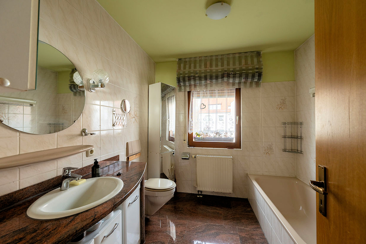 Das im Jahr 1992 erbaute, voll unterkellerte Wohnhaus überzeugt durch seine großzügige Raumaufteilung sowie vielseitige Nutzungsmöglichkeiten. Mit insgesamt fünf Zimmern und drei Bädern eignet sich die Immobilie sowohl als klassisches Einfamilienhaus als auch als Zweifamilienhaus und bietet ideale Voraussetzungen für Mehrgenerationenwohnen. Ein separates Treppenhaus ermöglicht dabei eine flexible und voneinander unabhängige Nutzung der einzelnen Etagen.
