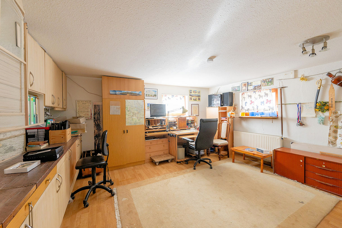 Im Untergeschoss stehen neben dem Heizungsraum und einem Kellerraum ein zusätzliches Duschbad sowie ein vielseitig nutzbares Hobbyzimmer zur Verfügung, welches sich ideal als Gäste-, Arbeits- oder weiteres Kinderzimmer eignet.