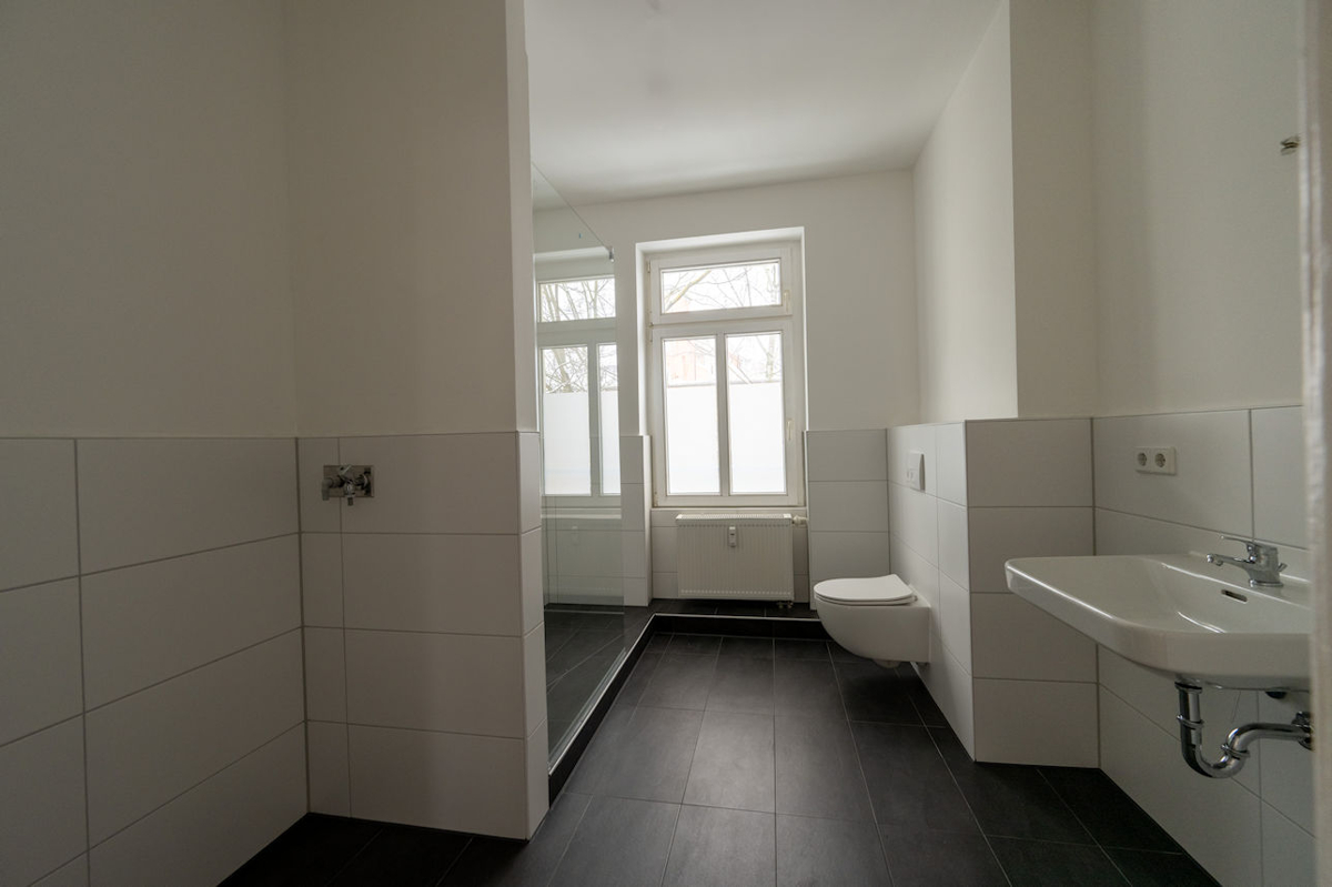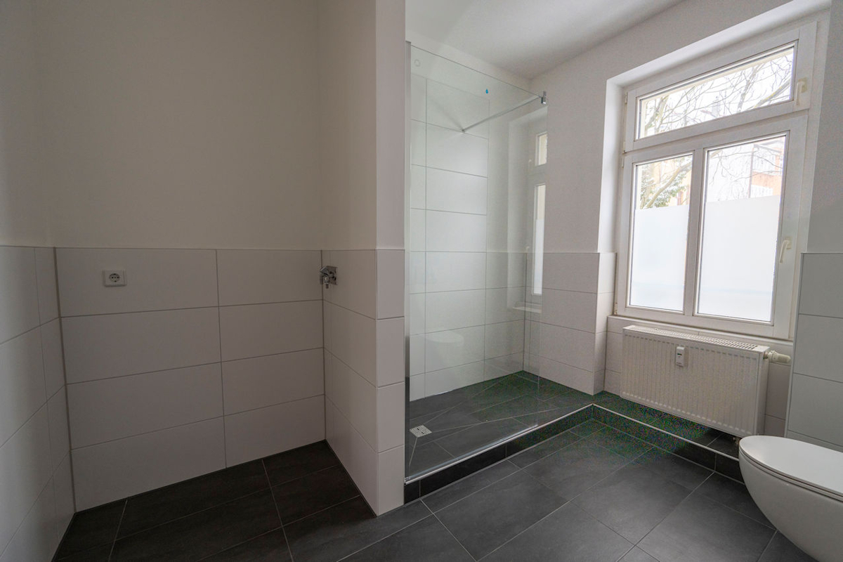 Ein echtes Highlight ist das großzügige Tageslichtbad mit moderner, bodengleicher Dusche – stilvoll, komfortabel und alltagstauglich. Der Waschmaschinenanschluss ist hier selbstverständlich integriert.