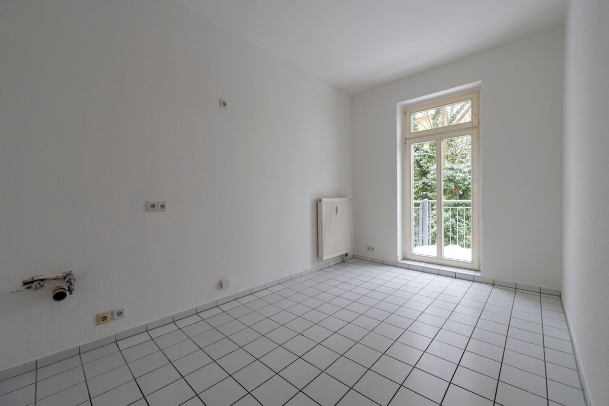 Die Küche bietet nicht nur Platz zum Kochen, sondern punktet zusätzlich mit einem angrenzenden Balkon, der zu entspannten Momenten im Freien einlädt.