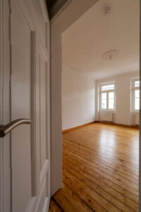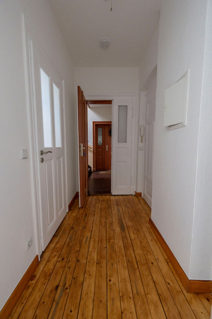 Die beiden hellen Zimmer laden zum Wohlfühlen, Entspannen oder Arbeiten ein. Besonders charmant: hochwertiger Dielenboden verleiht der Wohnung eine warme, wohnliche Atmosphäre, während dekorativer Deckenstuck in einem der Räume dem Zuhause einen eleganten Altbauakzent schenkt.
